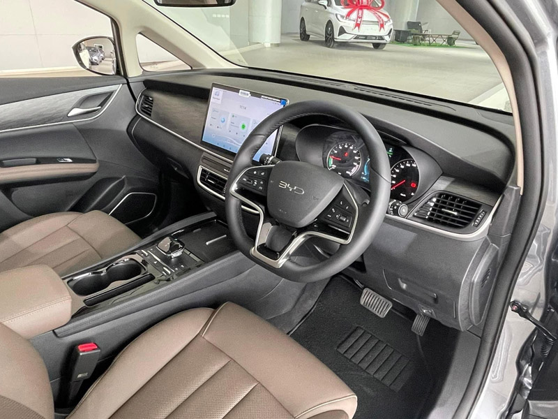 Phần đuôi xe cũng được chăm chút kỹ lưỡng, với cụm đèn hậu LED nằm ngang nối liền bởi dải chrome, tạo sự nổi bật và sang trọng. Thiết kế này không chỉ thu hút ánh nhìn mà còn khẳng định thương hiệu BYD mỗi khi xe xuất hiện trên đường.