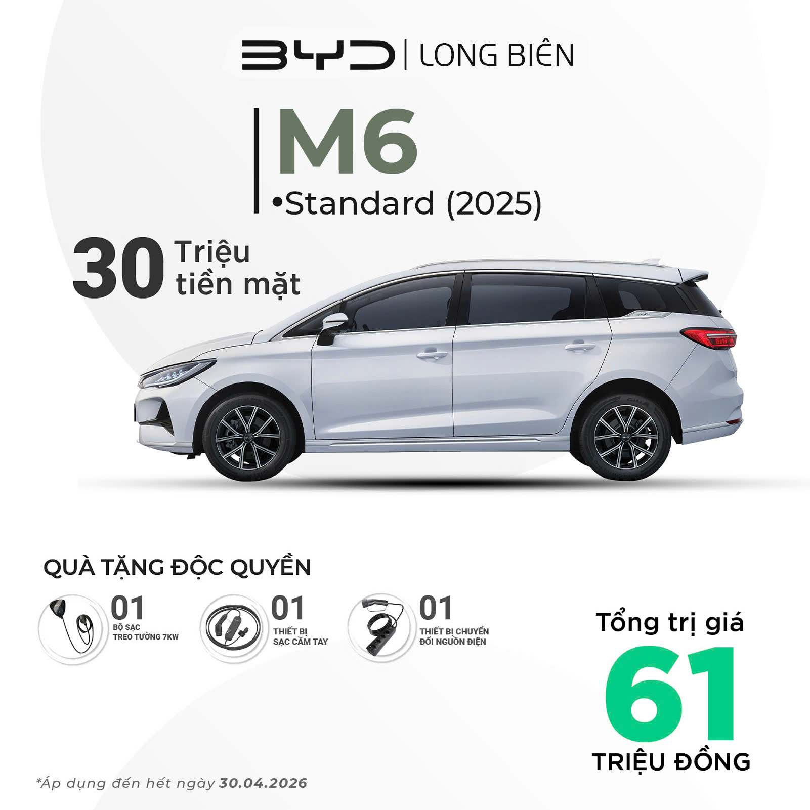 Giá trên là giá công bố của Hãng. Để được mua xe BYD M6 giá tốt nhất + Khuyến Mãi nhiều nhất hãy gọi cho ngay cho Phòng Bán Hàng: 0918.671.135