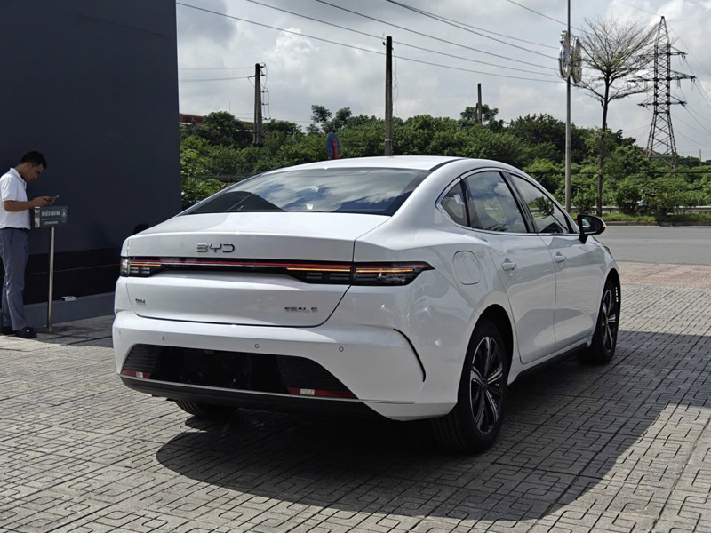 Đuôi xe được thiết kế bo tròn nhẹ nhàng, kết hợp với các chi tiết cản sau đơn giản và bộ khuếch tán gió, tạo sự cân đối với tổng thể. Xe trang bị cụm Đèn hậu LED Toàn chiều rộng (Full-width LED Light Bar), giúp tăng vẻ hiện đại và khả năng nhận diện từ phía sau, gợi nhớ đến đàn anh BYD Seal thuần điện.